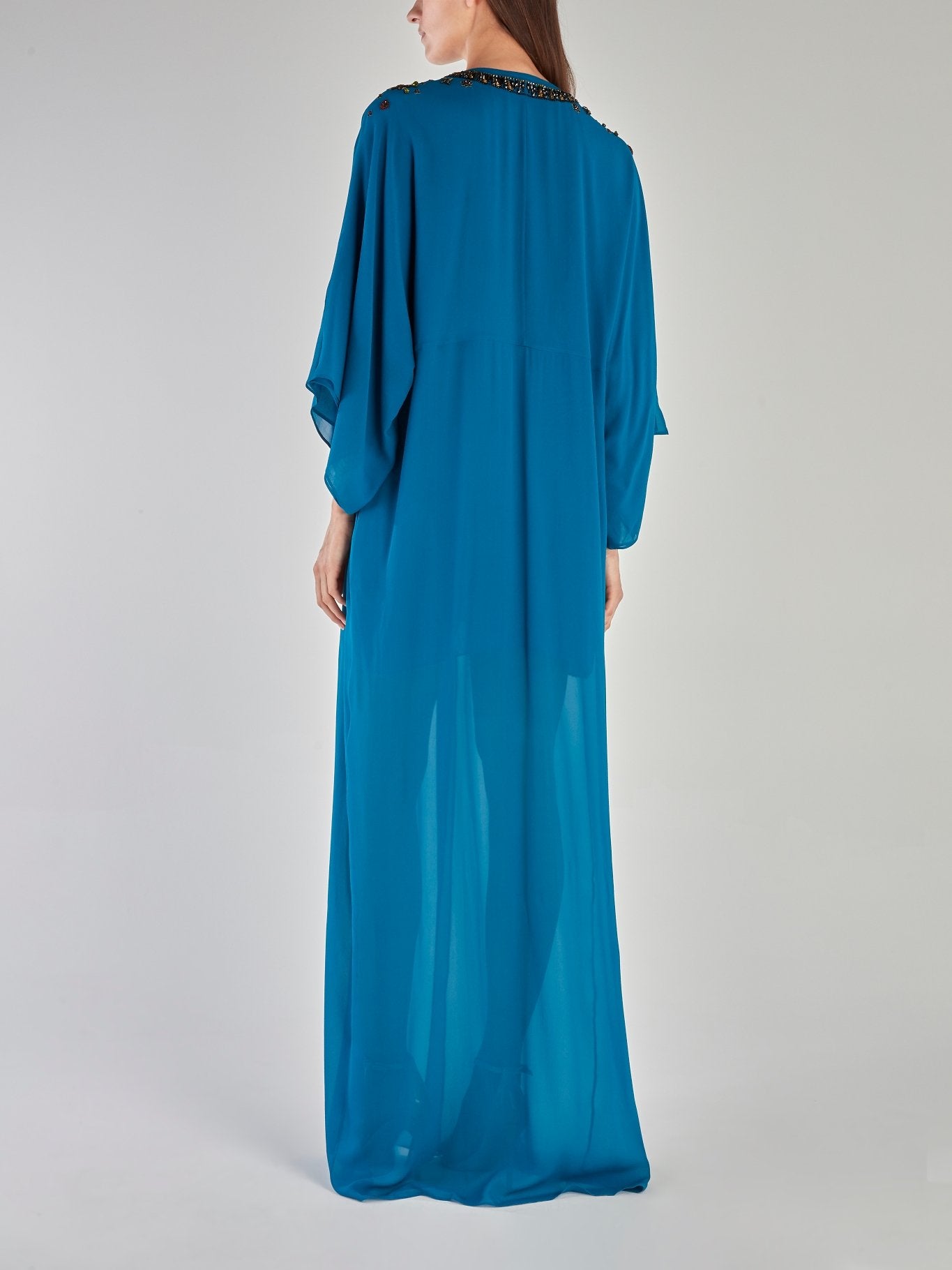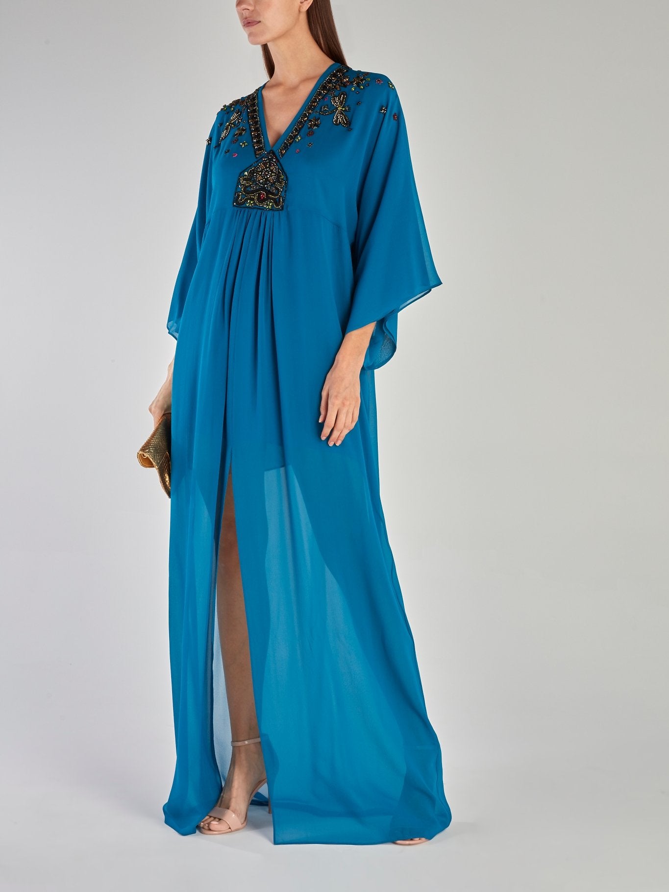 This maxi dress is a spectacular evening choice that reflects the label's exquisite artistry. The toned fabric accentuates the ornate bodice of the garment, while the floor-sweeping skirt emphasizes the design's timeless glamour. Dazzling earrings and lofty stilettos will be the ideal match to the dress' elegant codes.REF. FW17FQR124GG001COLOR COMBINATIONRC40